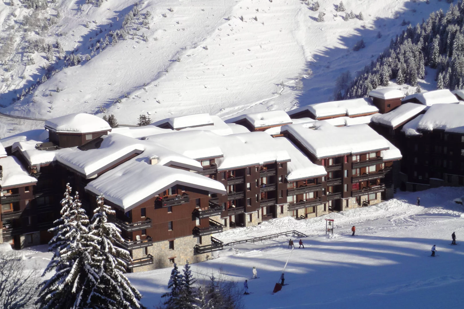 Para acceder a las pistas, hay que ir al guarda esquies de la residencia, cruzar la plaza andando, y poner los esquies en la pista del Furet que lleva al punto de partida principal de las telecabinas.