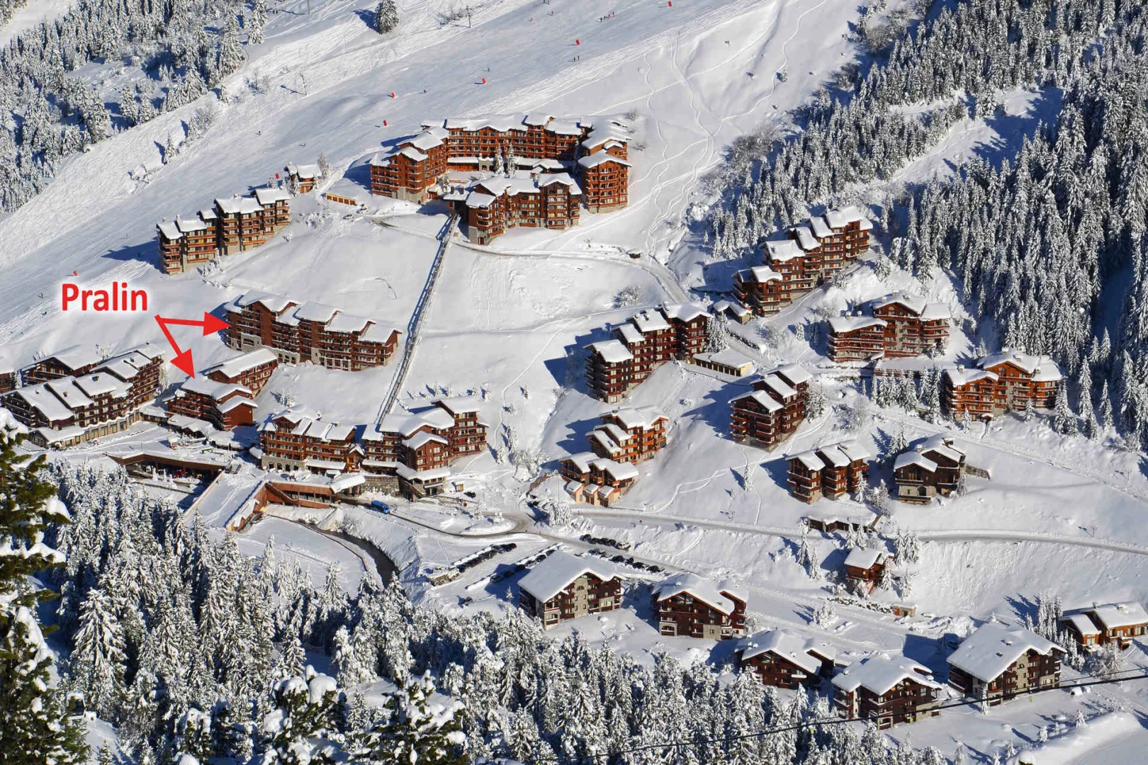 La Residencia Tuéda / Pralin está en las pistas y por encima de la zona comercial de Chatelet. Está muy cerca de la escuela francesa de esquí y de la escuela infantil "Piou-Piou".