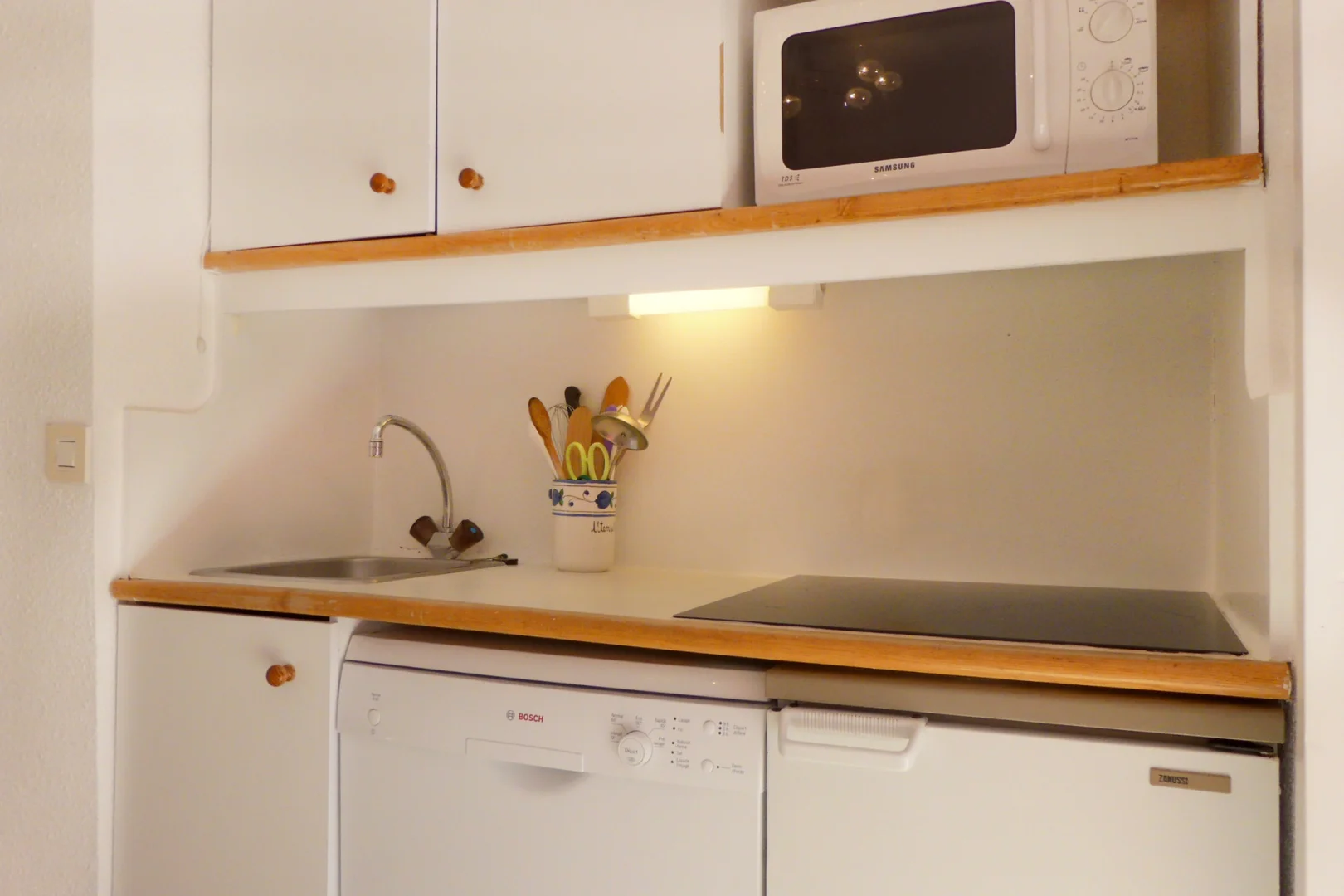 Cocina: microondas, nevera, lavavajillas, 4 placas vitrocerámicas