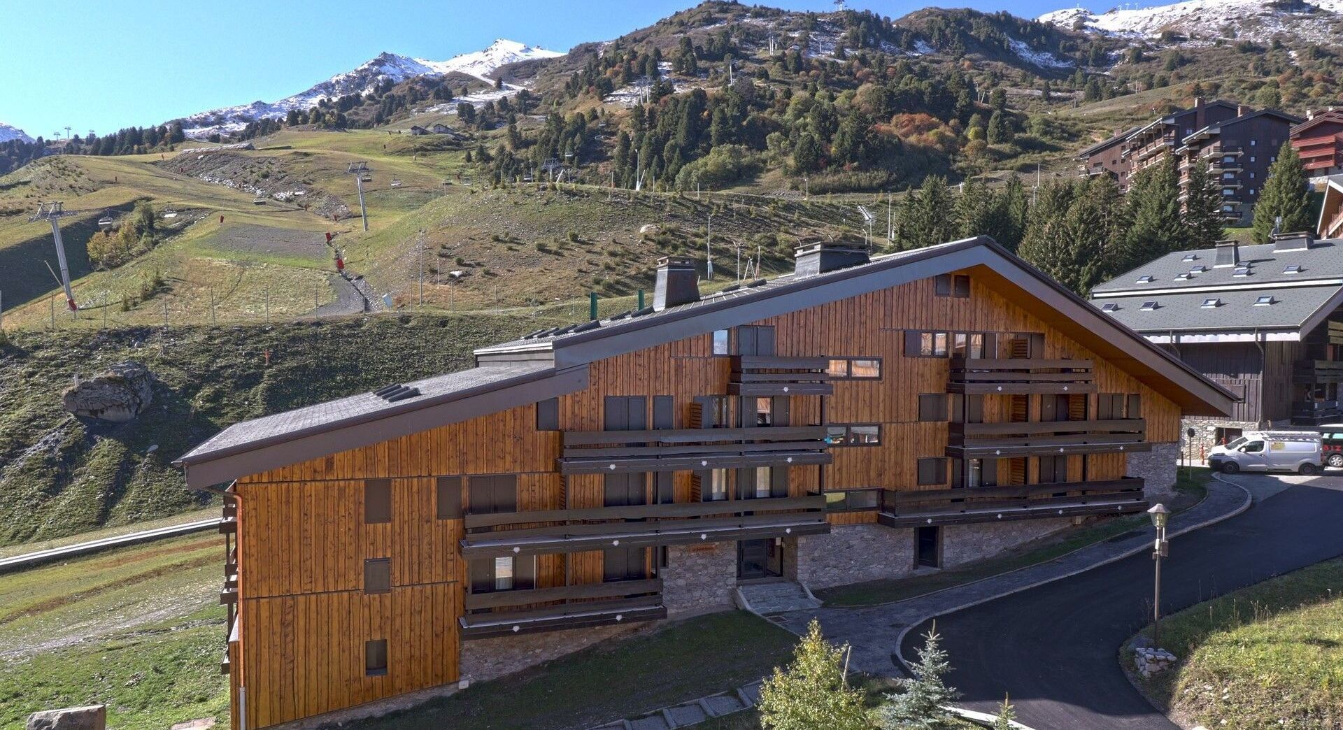 Las distancias hablan por sí solas: centro de la estación a 200 m, ESF a 250 m, comercios a 150 m. Ascensor, taquillas para esquís, aparcamientos y acceso seguro completan los servicios, en un barrio apreciado por su tranquilidad.